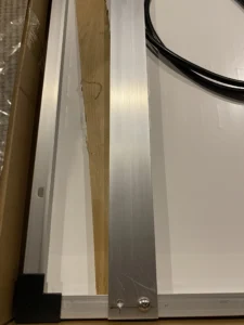 The first step was to determine what orientation I wanted the panel in since it’s a rectangle. I decided to go with having the long side run horizontally, I felt it would just look better. Once this was determined I measured the width of the panel, doubled it and then purchased the length of aluminum flat bar. I went with Aluminum because the panel frame was Aluminum, it’s light weight, and inexpensive, like less than $20 with enough left over to do a second panel.