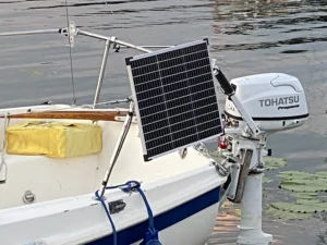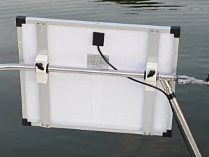 If only the solar panel had been that easy. I blame my inexperience for the stumbles I experienced. I watched a lot of videos on adding solar to boats, I checked out some solar setups on boats at the marina I am in, and I spoke to a good friend who had just gone through this. Of course, before I did all this, I ordered a 50-watt panel with a controller off Amazon during Prime Days because it was 50% off. I wanted to go with a rail mount setup. Some people opt for Deck mount but that’s just something else to get in the way. Now it seems there are 2 main ways to mount a panel to the rail. Both options use rail mount brackets, there are a number of brackets that can be used but they fall into 2 types, easily removable, and less easy. I opted to go with the easily removable so I could make adjustments, remove it for winter storage, and not having to risk losing another tool to the murky depths of the lake. Now the first option is to mount the rail bracket directly to the solar panel and then to the rail. Of course, using this option was not possible for me for a few reasons. The first being the frame of the solar panel was not wide enough for the rail mount bracket to feel secure. The second reason is that I’m not sure I could find a screw and nut combination short enough to fit, but honestly, I didn’t look after reason 1. The second option to mount the bracket to the panel is to take two pieces of aluminum flat bar wide enough for the brackets and long enough to span the back of the panel. This is the method I went with, not only did the bracket make complete contact with the flat bar but it also allowed me to get the bracket attached securely using some loctite orange for a bit of extra piece of mind.